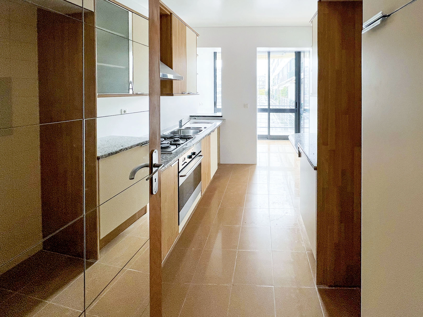 Constituído por cozinha equipada (forno, fogão, exaustor, esquentador, frigorífico e máquina de lavar roupa), sala ampla e muito luminosa, quarto com roupeiros, wc e lugar de garagem.