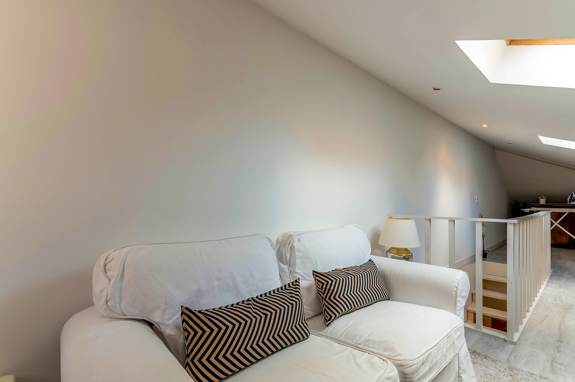 Constituído por sala ampla com zonas distintas de estar e de jantar, mezzanine, cozinha totalmente equipada, três quartos e wc completo com janela. Dispõe de caixilharia com vidros duplos para melhor conforto térmico e acústico. Totalmente mobilado e equipado, pronto a receber os seus próximos inquilinos.